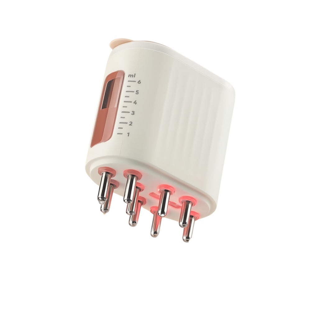 Son réservoir intégré permet d’appliquer votre sérum capillaire de manière régulière et parfaitement contrôlée, sans gaspillage. Chaque pression libère la quantité idéale de produit directement à la racine, là où les cheveux en ont le plus besoin. Que vous utilisiez un sérum anti-chute, un soin fortifiant ou un booster de croissance, l’appareil optimise l’absorption pour des résultats plus rapides et durables.